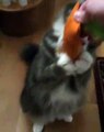 Ce chat aime les carottes et il fait tout pour en avoir. Trop chou !
