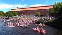 Le premier départ des 24 Heures Kayak 2018, au trot : un relais festif pour 1000 participants répartis dans 135 kayaks.