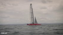 Men's Journal editor Brittany Smith trains with Rome Kirby, Mac Agnese, and Dan Morris of U.S. SailGP Team ahead of SailGP New York.