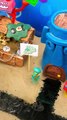 The automatic sweeper lost control and almost hurt the baby. The dog reacted quickly