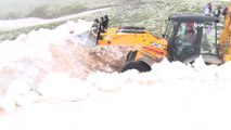 -Karla kapanan yolların iş makinaları ile açılması çalışmalarından görüntü