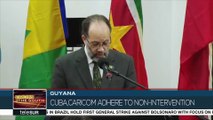 La reunión ministerial Caricom-Cuba se realizó este viernes en Guyana. Durante la cita se escucharon las intervenciones de los países miembros de la Comunidad del Caribe, así como del canciller cubano. teleSUR