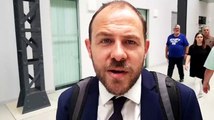 Philippe Petitcolin s'adresse aux salariés réunis dans le hall d'entrée du bâtiment 66 de General Electric à Belfort. Un millier de salariés bloquent l'accès à la salle où devait se dérouler, à 9 h, la première réunion d'information sur le plan social prévu à Belfort.