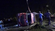 - Kaza yapan tırdan görüntü - Kaza nedeniyle kapanan D - 100 karayolunun iİstanbul yönünden görüntü - Tırın yoldan vinç yardımı ile kaldırılması - Genel görüntüler - Kocaeli 'de meydana gelen kaza nedeniyle D - 100 kara yolu İstanbul istikametinde konvoy oluştuKOCAELİ (AA) - Kocaeli 'nin Körfez ilçesinde tırın devrilmesi sonucu D - 100 kara yolunun İstanbul istikametinde trafik aksadı.Alınan bilgiye göre, D - 100 kara yolundan İstanbul yönüne seyreden Nusret Mezarcı idaresindeki 41 YN 670 çekici plakalı tır, Hereke mevkisinde sürücüsünün direksiyon hakimiyetini kaybetmesi sonucu bariyerlere çarparak devrildi.Çevredekilerin haber vermesi üzerine olay yerine itfaiye, polis ve sağlık ekipleri sevk edildi.Kazada yaralanmayan sürücü, sıkıştığı yerden itfaiye ekiplerinin çalışmasıyla çıkarıldı.Kaza nedeniyle trafiğe kapatılan D - 100 kara yolunun İstanbul istikametinde uzun konvoy oluştu.Tır, Karayolları ekiplerinin yaklaşık 2 saat süren çalışmalarının ardından vinçle kaldırıldı.Yol temizleme ve yıkama çalışmasının ardından kara yolunda trafik akışı normale döndü.