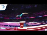 Artur DALALOYAN (RUS) scored 14.716 on vault in the qualification round of Glasgow 2018. He qualified to the final in third place.