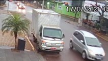 Câmera registra colisão entre carro e moto na Avenida Piquiri, no Bairro São Cristóvão