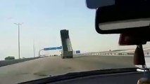 Un camion benne défonce des panneaux de signalisation sur l'autoroute
