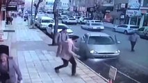 Alev alan otomobildeki engellinin kurtarılma anı kamerada