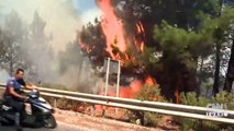 İzmir'in Dikili ilçesindeki Çandarlı bölgesinde, yazlık sitelerin yanında orman yangını çıktı.