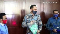 Ketua Umum Partai Kebangkitan Bangsa Muhaimin iskandar bersama Ketua Umum Partai Demokrat Agus Harimurti Yudhoyono di kantor DPP PKB, Jakarta.