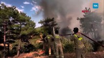 Hem havadan hem karadan yangına müdahale edilirken, bölgedeki evler boşaltıldı, yollar da trafiğe kapatıldı