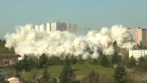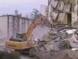 Démolition de L'HLM R+8 TAMARIS du quartier verte voyes de st Menehould (51) Engins: Caterpillar 365B UHD Caterpillar 325C