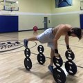 Il fait ses haltères avec une femme debout en équilibre sur la barre !