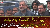 Islamabad: PML-N leader Shahid Khaqan Abbasi talks to media