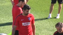 El portugués, el fichaje más caro en la historia del Atlético, ya es uno más en la concentración de Los Angeles de San Rafael