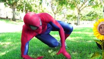Frozen Elsa & Pink Spidergirl Turns into Beautiful Sun Flowers! w/ Joker Thief & Maleficent!