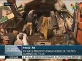 Choque de trenes cobra vidas en Pakistán