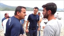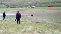 İlçeye 10 kilometre uzaklıktaki Sarıtaş köyünde yaşayan Mesut Büyüksu ve Olcay ile Orçun Ulalı, öğle saatlerinde baraj gölüne girdi.