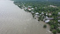 A powerful hurricane that hit Louisiana pulled out a huge tree by its root, causing it to fall dramatically in a person's backyard.