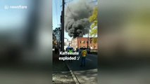 The video shows smoke rising into the sky forming a giant mushroom cloud over the city damaging nearby vehicles and windows in residential flats.