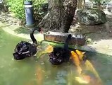Swans feeding koi fish. This makes feeling hopeful for Mother Nature