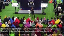 Menteri Luar Negeri RI, Retno Lestari Priansari Marsudi menghadiri Diplomacy Festival di Universitas Airlangga, Surabaya, sabtu, 24 November 2018.