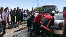( ŞANLIURFA )-2 kişinin yaralandığı kaza sonucu yolda uzun araç kuyrukları oluştu ŞANLIURFA