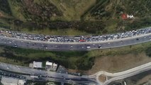 - Kurban Bayramı tatilini şehir dışında ve geçirmek isteyenler vatandaşlar TEM Otoyolunda trafik yoğunluğu oluşturdu. Yer yer durma noktasına gelen trafik yoğunluğu havadan görüntülendi. Kurban Bayramı tatilini şehir dışında geçirmek isteyen vatandaşlar iş çıkışının yaklaşmasıyla Kuzey Marmara Otoyolu'ndan TEM bağlantı noktasında trafik yoğunluğu oluşturdu. İSTOÇ'tan başlayan trafik, Mahmut bey kavşağına kadar devam etti. Yer yer durma noktasına gelen trafik yoğunluğu havadan görüntülendi.