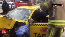 Pendik'te duvara çarpan sürücü araç içerisinde sıkıştı