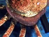 Une arraignée de mer s'extrait de sa coquille