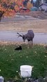 Ce chat cherche les embrouilles à un cerf... mauvaise idée