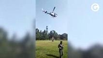 Bombeiros foram transportados de helicóptero para combater as chamas