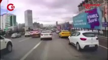 Önlerinde meydana gelen kazayı gören 34 TAZ 65 plakalı taksi şoförü ile 34 NF 30 58 plakalı otomobilin sürücüleri de ani fren yapınca araçlar birbirine vurdu. Haber