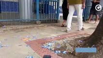 Muitos santinhos espalhados pelo chão em frente ao Ifes, aqui na Capital