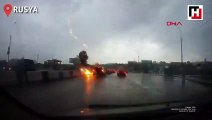 Rusya'da yolda hareket halinde giden cipin arka camına yıldırım düştü.