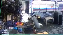Freni boşalan kamyon hırdavat dükkanına böyle girdi