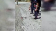 İtfaiye eri yılanın başına demir çubukla vurdu, vatandaş 'kürekle vur' deyip yol gösterdi