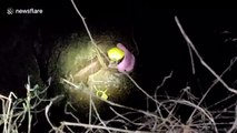 This is the bizarre moment firefighters in Andorra used a helicopter to airlift a pregnant cow down a mountain.
