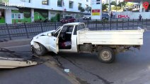 Otobüs durağında dört kişinin yaralandığı kaza anı kamerada