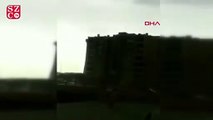 Vatandaşların cep telefonu kamerasına yansıyan görüntülerde öğrenciler hızla okulun içine girmeye çalışırken, rüzgarın etkisiyle kiremitler havalanıyor. Havalanan kiremitler bahçede kaçışan 2 öğrencinin etrafına düşüyor. Ancak şans eseri öğrencilerin burnu bile kanamıyor.