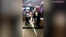 Footage of Man and Woman Wrestling in Middle of McDonald's
