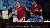 Wales qualified for the Rugby World Cup quarter-finals as wing Josh Adams scored a hat-trick in a 29-17 victory over Fiji.