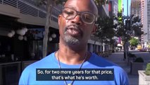 The video shows dozens of basketball fans shouting "LBJ" loudly when James walked through the hotel hall.