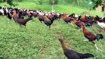 A flock of chickens wandered onto a football field in Indonesia during a match between local sides in this bizarre and funny clip.
