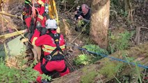 Trentham Fire Brigade and CFA's Oscar 1 rescue team safely rescued a dog from a mine shaft. Footage by Ethan Brown, Trentham Fire Brigade