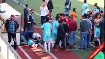 Kayseri'de oynanan amatör küme Başakpınar Belediyespor-Yavuzspor maçının bitiş düdüğü ile birlikte tekme ve yumruklarla birbirine saldıran iki takım oyuncuları futbol sahasını adeta savaş alanına çevirdi.