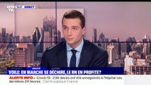 La question du port de voile en sortie scolaire a été relancée par un élu RN qui a pris à partie une mère voilée lors d'une séance du conseil régional de Bourgogne-Franche-Comté. "Le voile islamique est devenu aujourd'hui, non plus un vêtement religieux, mais un instrument de revendication politico-religieuse, communautariste, culturelle, cultuelle utilisé par les fondamentalistes islamistes pour organiser une sécession au sein du territoire français", réagit Jordann Bardella, vice-président du Rassemblement national, sur nos antennes. "Nous souhaitons que la loi votée en 2004 qui interdit les signes à l'école soit élargi à l'ensemble de la sphère publique." a-t-il ajouté. - BFM Story, du lundi 14 octobre 2019, présenté par Olivier Truchot, sur BFMTV.