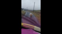 Ce bison charge une voiture sur la route !