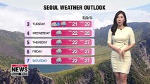 The rest of us will see 5 to 20 millimeters. Those of us in Seoul and its surrounding regions won't need an umbrella. Rain will taper off as the day goes on but those in the Gyeongsang-do Provinces will need to an umbrella handy through this evening,... while Jeju and the east coast will see rain lingering into early tomorrow.