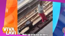 La mujer se desplomó y quedó tendida sobre las vías, aparentemente inconsciente por el impacto, mientras el tren ya ingresaba a la estación.
